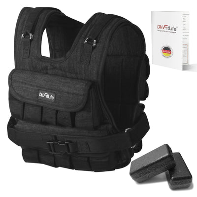 DH FitLife Verstellbare Gewichtsweste 10kg/20kg Kompakt u. Stabil zum Muskelaufbau u. Krafttraining