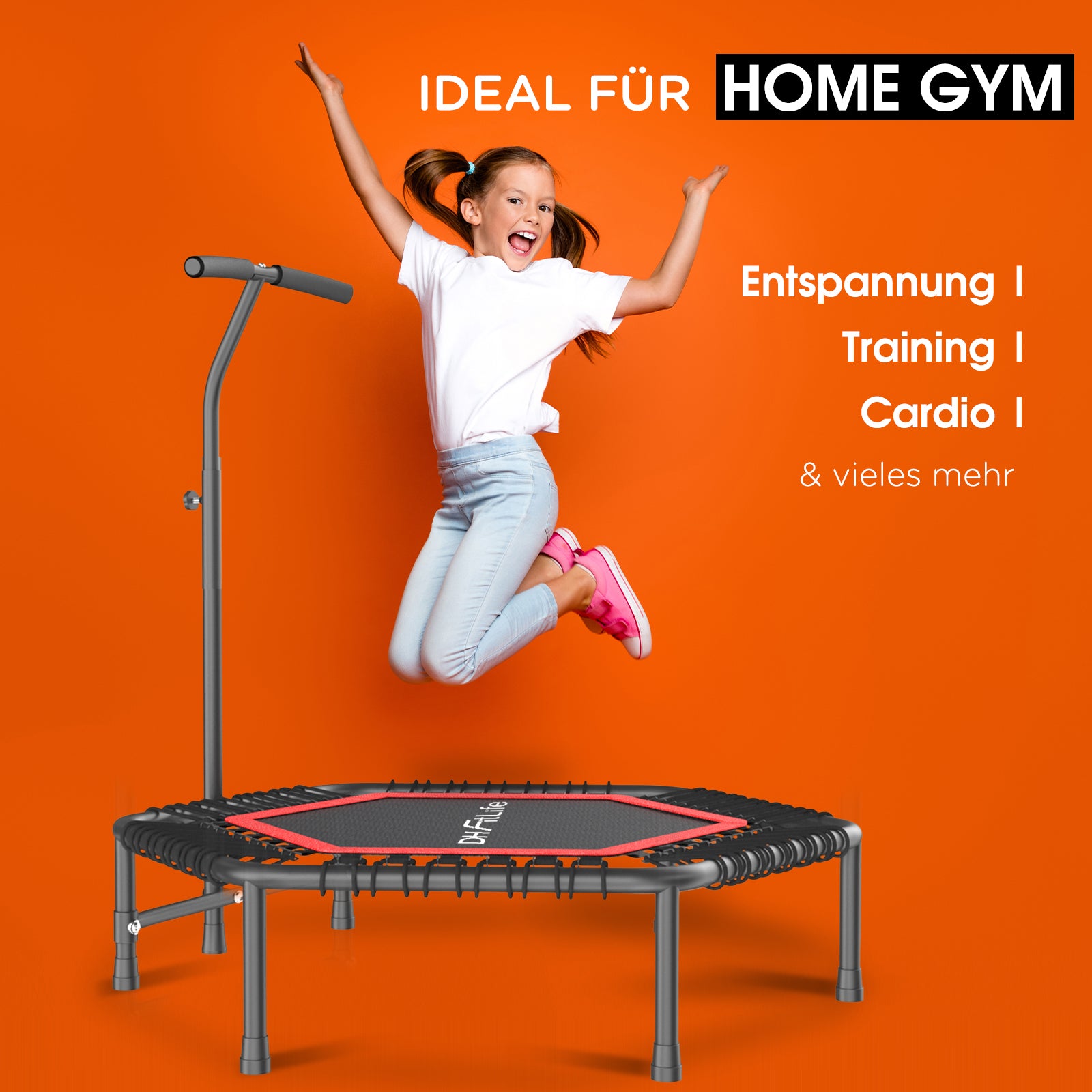 KOMPAKT & VIELSEITIG EINSETZBAR: Mit einer Sprungfläche von Ø 88 cm bietet das Trampolin ausreichend Raum für abwechslungsreiche Übungen und benötigt dennoch nur wenig Stellfläche. Ideal für dein Home Gym – selbst in kleineren Räumen. Auch bei dauerhaftem Aufbau bleibt es platzsparend und fügt sich gut in dein Wohnumfeld ein.